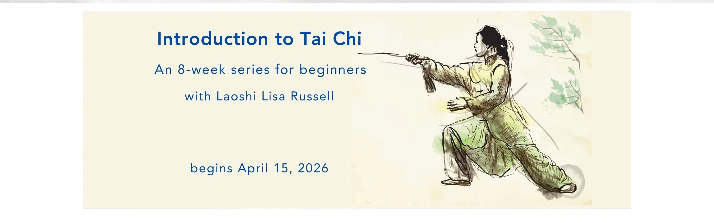 Introduction to Tai Chi for beginners, an 8- week series begins April 15, 2026